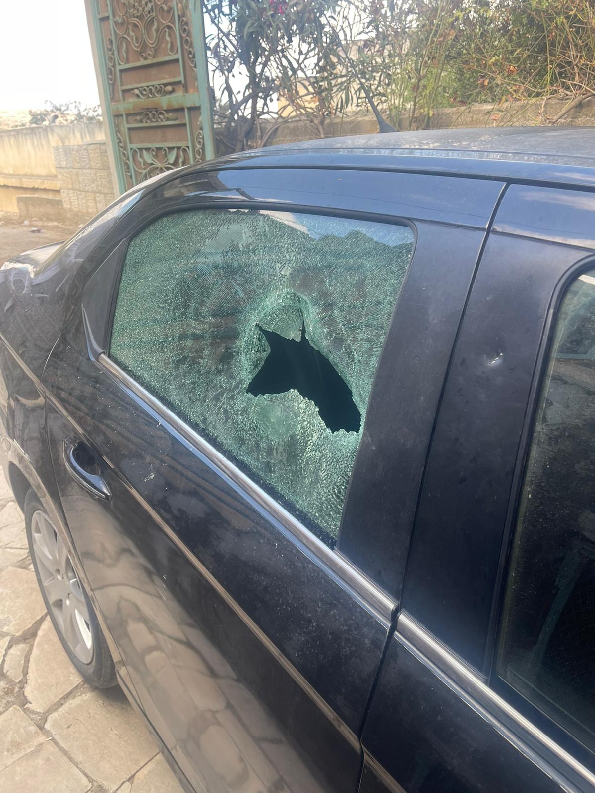 ويضيف: "كنت المركبة الوحيدة التي تحمل لوحة ترخيص فلسطينية، إذ كان يقف أمامي وخلفي مركبات إسرائيلية، وسرعان ما ترجل مستوطنون من سياراتهم، وأحاطوا بمركبتي، وبدأوا بالصراخ، وتوجيه الشتائم لنا، ثم هاجمونا بالحجارة والعصّي، ما أدى لتحطيم نوافذ المركبة، والإنارة فيها.