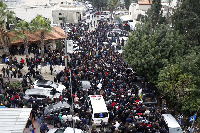 وجاب المشيعون شوارع البلدة، رافعين العلم الفلسطيني، ومرددين الهتافات الغاضبة والمنددة بالجرائم التي يرتكبها الاحتلال الإسرائيلي بحق أبناء شعبنا، ومن ثم أدوا صلاة الجنازة على الجثمانين قبل مواراتهما الثرى.