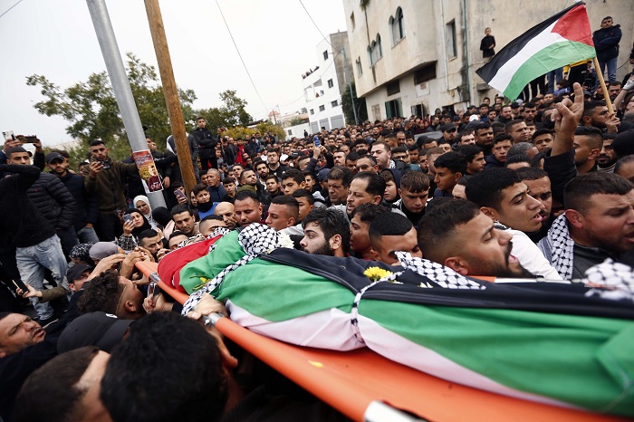 رام الله 29-11-2022 وفا- شيعت جماهير غفيرة من أبناء شعبنا في بلدة بيت ريما شمال غرب رام الله، اليوم الثلاثاء، جثماني الشهيدين الشقيقين جواد وظافر عبد الرحمن الريماوي (22 و21 عاما) إلى مثواهما الأخير في مقبرة البلدة.