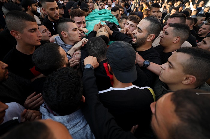 وردد المشيعون الهتافات المنددة بجرائم الاحتلال المتواصلة بحق شعبنا، والداعية إلى الوحدة الوطنية للتصدي للاحتلال وتعزيز صمود شعبنا على أرضه.