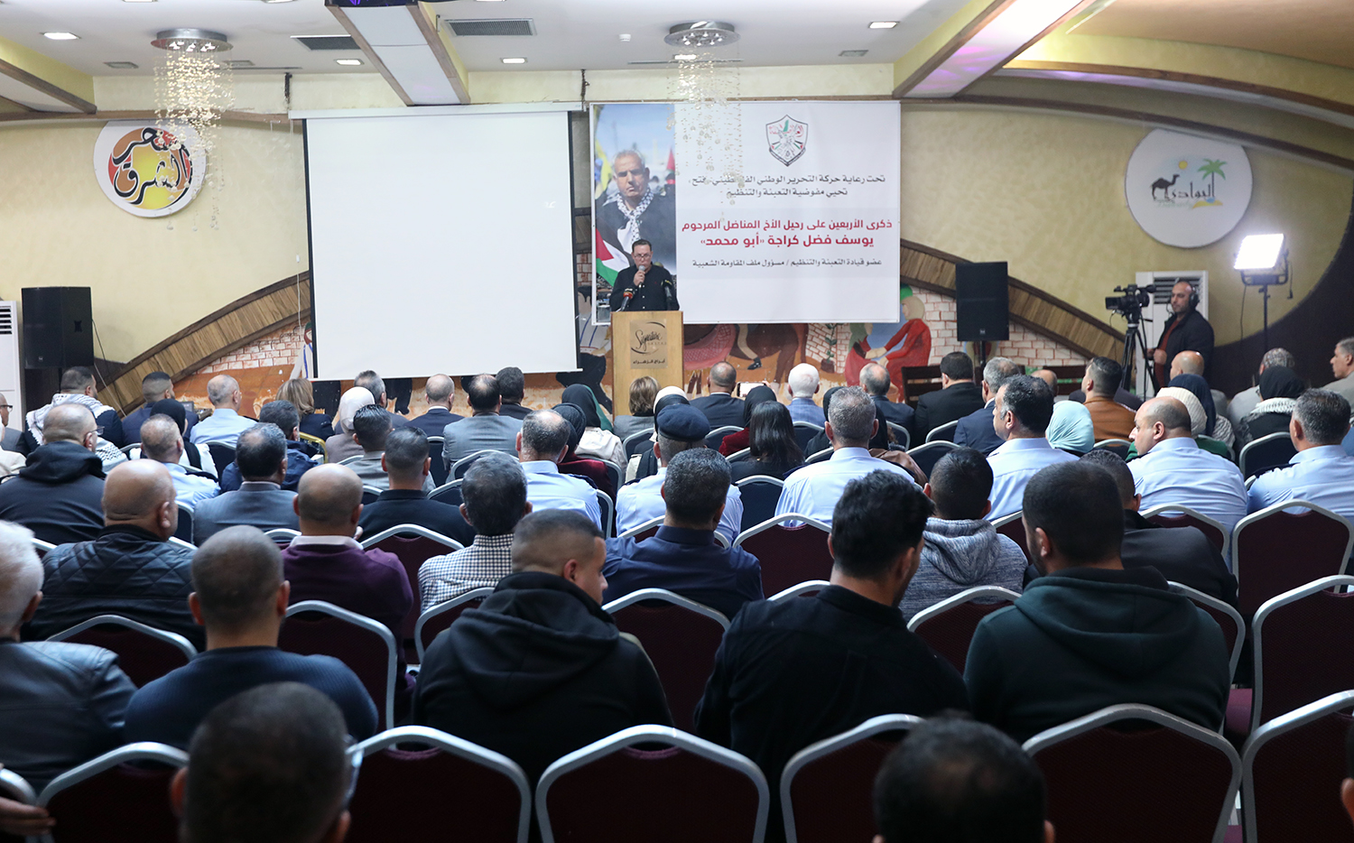 رام الله 7-11-2022 وفا- أحيت مفوضية التعبئة والتنظيم، اليوم الاثنين، بمدينة البيرة، ذكرى مرور أربعين يوما على رحيل مسؤول ملف المقاومة الشعبية في حركة "فتح" المناضل يوسف كراجة، من بلدة صفا غرب رام الله.