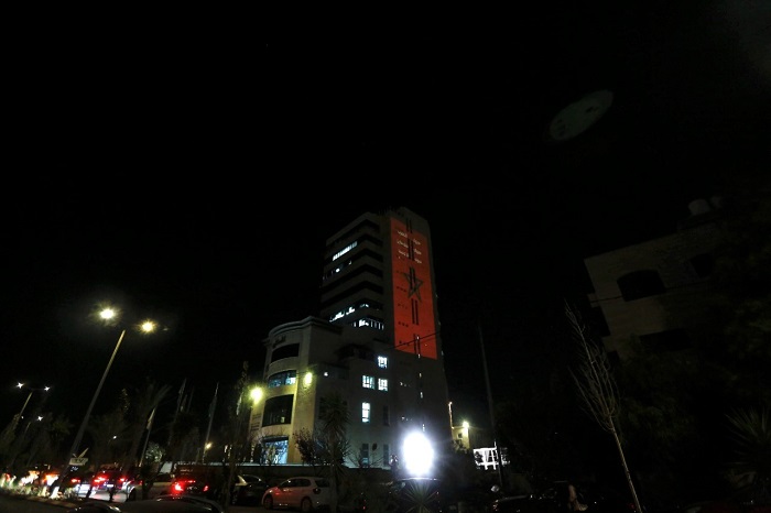 رام الله 10-12-2022 وفا- أضيء، مساء اليوم السبت، برج الهيئة العامة للإذاعة والتلفزيون في رام الله، بعلم المملكة المغربية، احتفالا بتأهل منتخب "أسود الأطلس" إلى المربع الذهبي في مونديال قطر 2022 بعد فوزه التاريخي على منتخب البرتغال، ليصبح أول منتخب عربي وإفريقي يصل إلى هذا الدور المتقدم في كأس العالم.