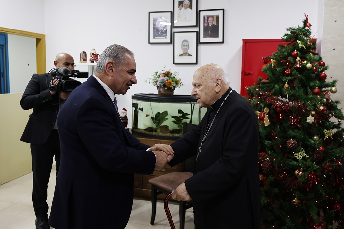 رام الله 10-12-2022 وفا- زار رئيس الوزراء محمد اشتية، اليوم السبت، البطريرك المتقاعد ميشيل صباح في قرية الطيبة شرق رام الله، حيث هنأه وأبناء شعبنا بمناسبة حلول أعياد الميلاد المجيدة، وتمنى له دوام الصحة والعافية.