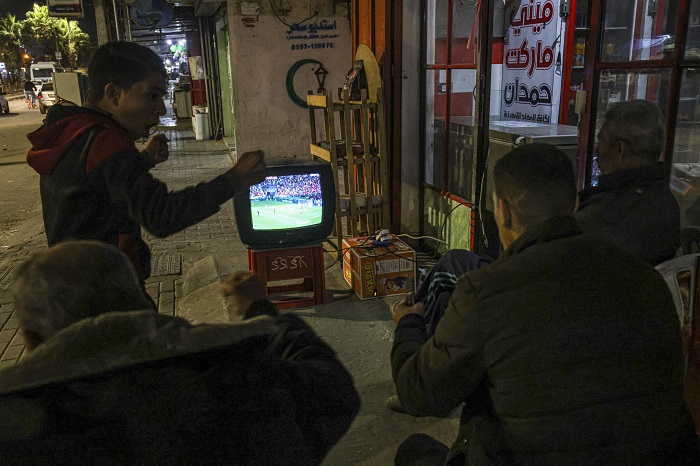 وبثت المباراة في عدد من الساحات العامة بمختلف المدن الفلسطينية في المحافظات الشمالية والجنوبية، وسط حضور الآلاف من أبناء شعبنا، من مختلف الفئات العمرية ومن كلا الجنسين، الذين رفعوا الأعلام الفلسطينية والمغربية، وهتفوا بالتشجيع لنجوم المنتخب المغربي، الذي حققوا إنجازا تاريخيا بفوزهم وتأهلهم إلى المربع الذهبي.