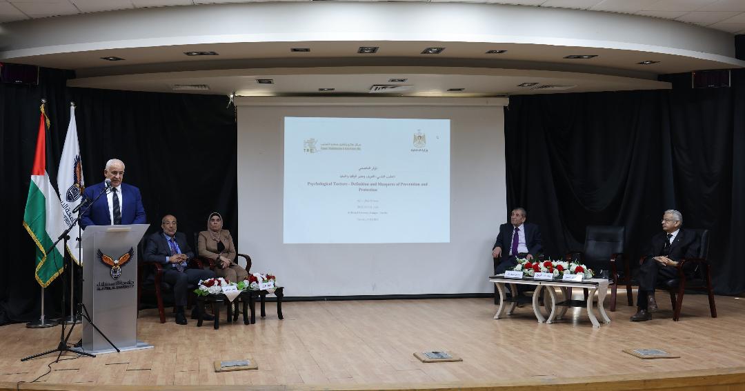 اريحا 13-12-2022 وفا- شارك وزير الداخلية اللواء زياد هب الريح، اليوم الثلاثاء، في المؤتمر التخصصي بعنوان (التعذيب النفسي، التعريف ومعايير الرقابة)، والذي ينعقد في جامعة الاستقلال برعاية وزارة الداخلية وبالشراكة مع مركز علاج وتأهيل ضحايا التعذيب، وذلك بحضور رئيس جامعة الاستقلال صالح أبو إصبع، ورئيس مجلس إدارة مركز وعلاج ضحايا التعذيب محمود سحويل، ورئيس وحدة حقوق الإنسان في وزارة الداخلية هيثم عرار.
