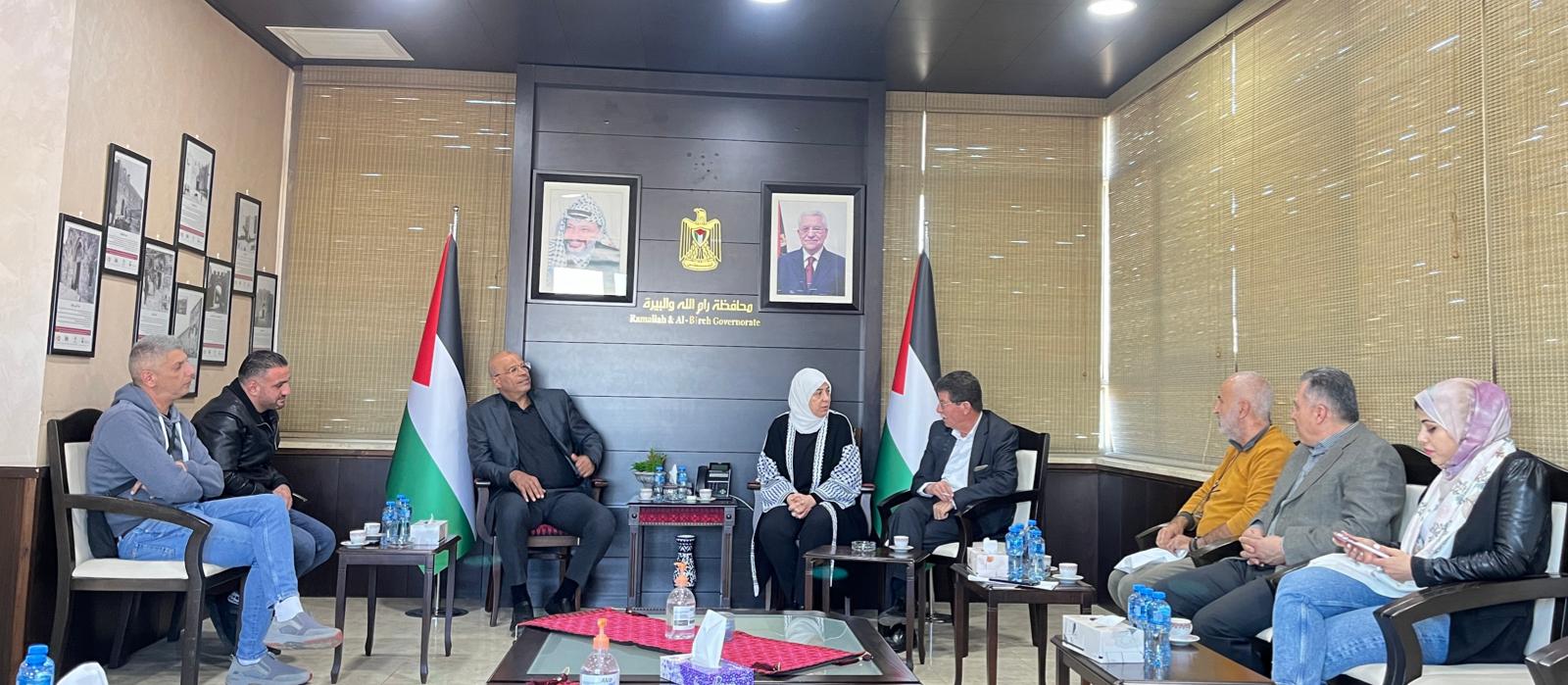 رام الله 18-12-2022 وفا- مع اقتراب موعد حريته بعد 40 عاما من الاعتقال في سجون الاحتلال الإسرائيلي، استقبلت محافظ رام الله والبيرة ليلى غنام، اليوم الأحد، وفدا من عائلة عميد الأسرى الفلسطينيين، عضو اللجنة المركزية لحركة "فتح" كريم يونس، بحضور رئيس نادي الأسير قدورة فارس، ووكيل هيئة شؤون الأسرى والمحررين عبد القادر الخطيب.