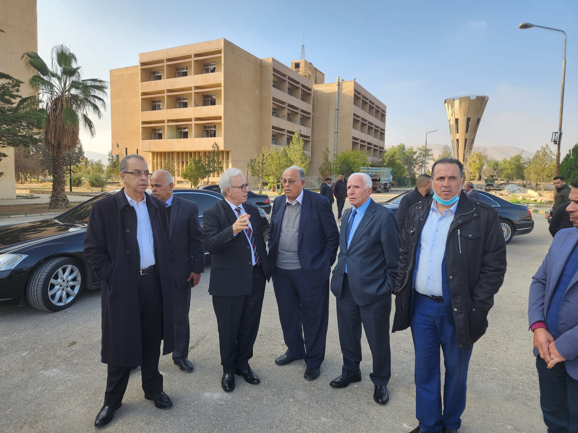 دمشق 2-12-2022 وفا- تفقد عضو اللجنتين التنفيذية لمنظمة التحرير الفلسطينية والمركزية لحركة "فتح" عزام الأحمد، وعضو اللجنة التنفيذية للمنظمة، رئيس دائرة التربية والتعليم العالي علي زيدان أبو زهري، اليوم الجمعة، سير العمل بمعهد فلسطين التقني والمهني التابع لأسر الشهداء في العاصمة السورية دمشق.