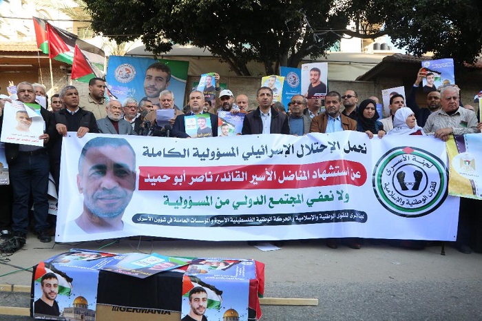 وقال خالد البطش في كلمة القوى والفصائل خلال مؤتمر صحفي أمام مقر اللجنة الدولية للصليب الأحمر غرب مدينة غزة: نعلن الحداد العام في قطاع غزة وندعو جميع أبناء شعبنا وفصائله وقواه ومكوناته للمشاركة الواسعة في المسيرة التي ستنطلق اليوم الثلاثاء بعد صلاة المغرب، تنديداً باغتيال الأسير ناصر أبو حميد جراء سياسة الإهمال الطبي.