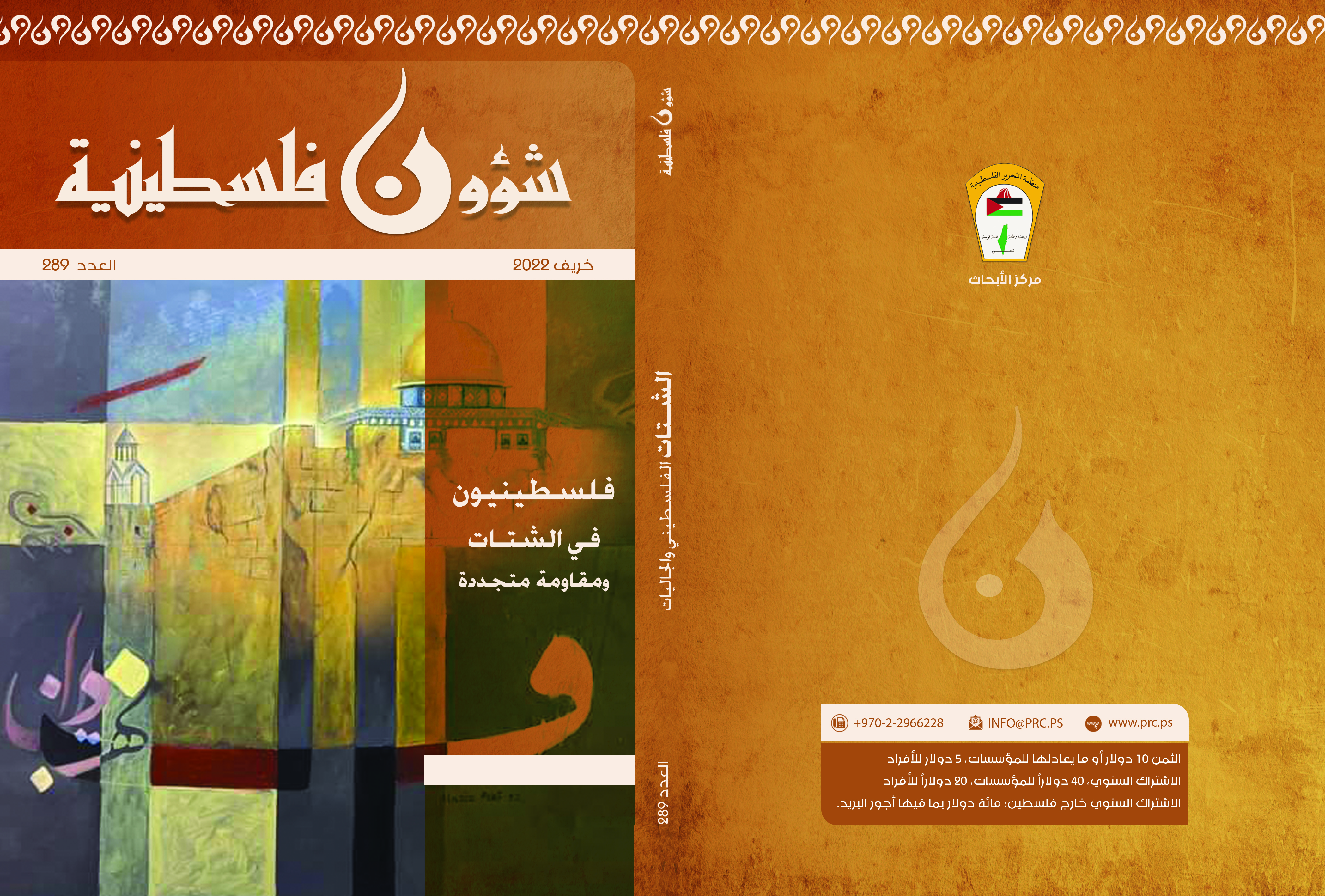 رام الله 28-12-2022 وفا- أصدر مركز الأبحاث في منظمة التحرير الفلسطينية، العدد (289)، عدد خريف 2022، من دورية "شؤون فلسطينية"، والذي فتح البحث في موضوع الشتات والجاليات.