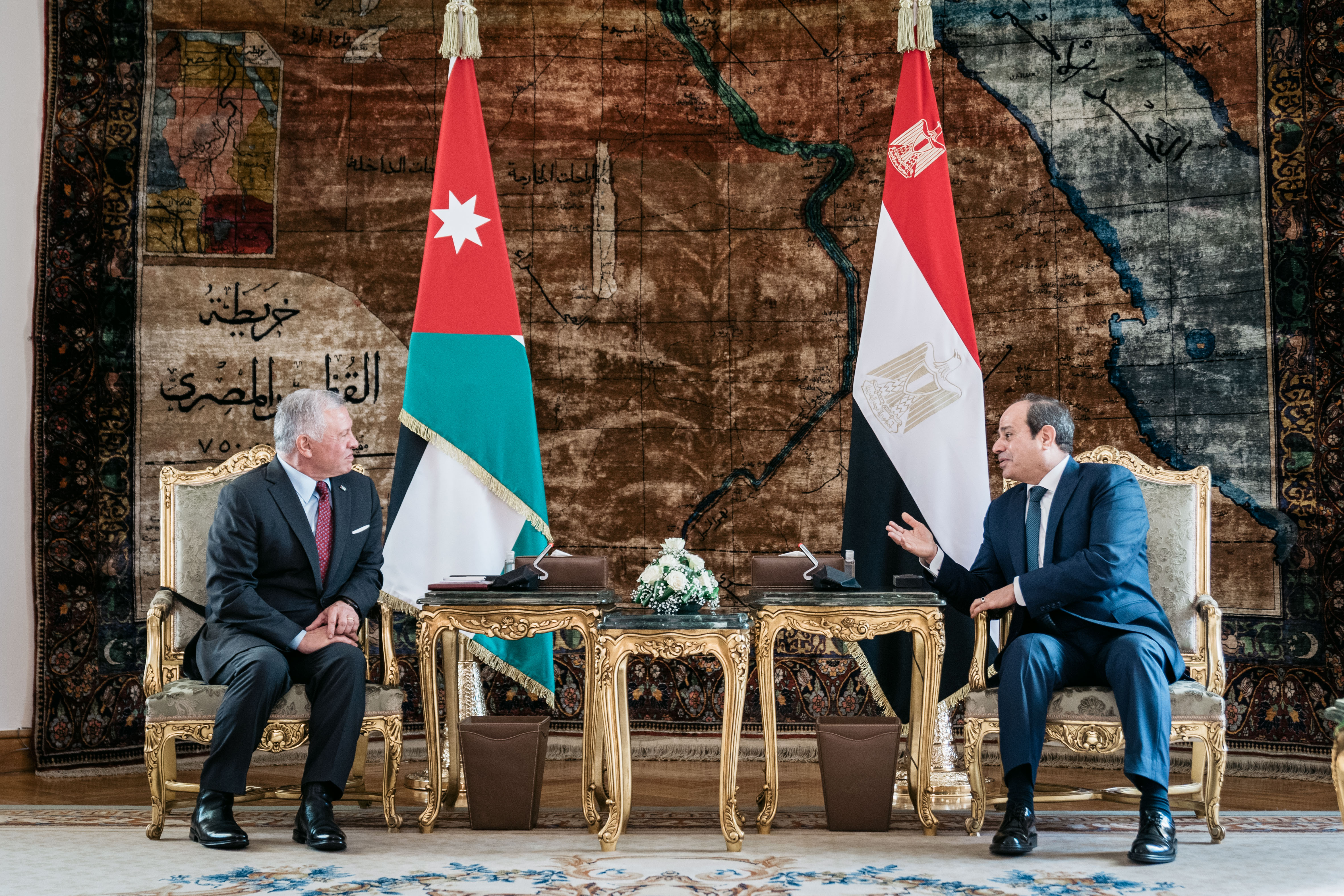 وشدد العاهل الأردني والرئيس المصري بعد لقائهما، اليوم السبت، في قصر الاتحادية بالعاصمة المصرية، القاهرة، على أهمية تكثيف الجهود لتحقيق السلام العادل والشامل على أساس حل الدولتين.