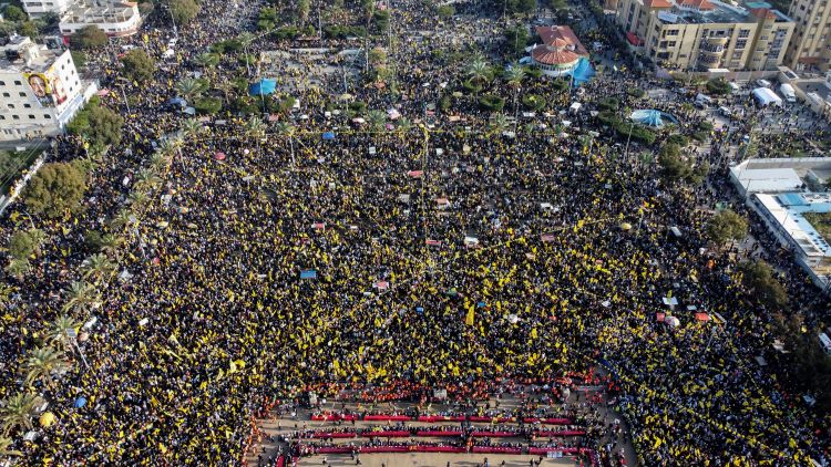 وكان مئات الآلاف من المواطنين شيبا وشبابا، وأطفالا، ونساء، وعائلات بأكملها من مختلف مدن ومخيمات قطاع غزة، توافدوا منذ ساعات الصباح الباكر إلى ساحة الكتيبة عبر مركبات خاصة، وعمومية، وحافلات، للمشاركة في المهرجان المركزي، إلى جانب تواجد عدد كبير للصحفيين من مختلف وسائل الإعلام المحلية والدولية.