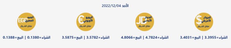 رام الله 4-12-2022 وفا- جاءت أسعار العملات مقابل الشيقل الإسرائيلي، اليوم الأحد، حسب سلطة النقد، على النحو التالي: