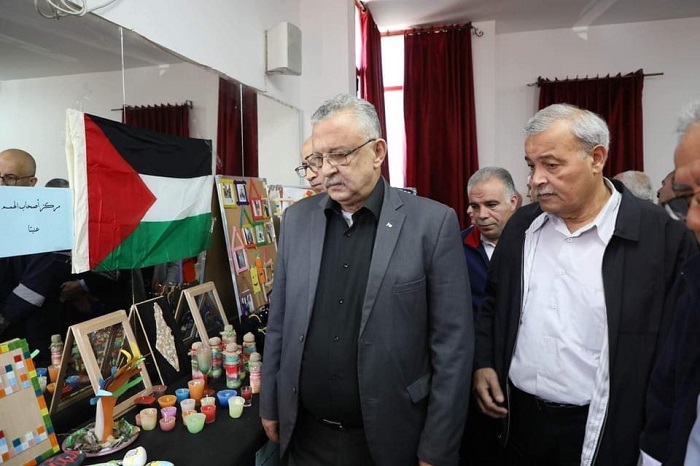 طولكرم 4-12-2022 وفا- افتتح محافظ طولكرم عصام أبو بكر، ورئيس جمعية الهلال الأحمر الفلسطيني يونس الخطيب، اليوم الأحد، معرض المنتجات والأشغال اليدوية لأطفال مراكز التأهيل، التابعة للجمعية في بلدة عنبتا شرق طولكرم، ضمن فعاليات الاحتفال باليوم العالمي للأشخاص ذوي الإعاقة واليوم العالمي للتطوع.