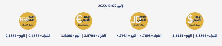 رام الله 5-12-2022 وفا- جاءت أسعار العملات مقابل الشيقل الإسرائيلي، اليوم الإثنين، حسب سلطة النقد، على النحو التالي: