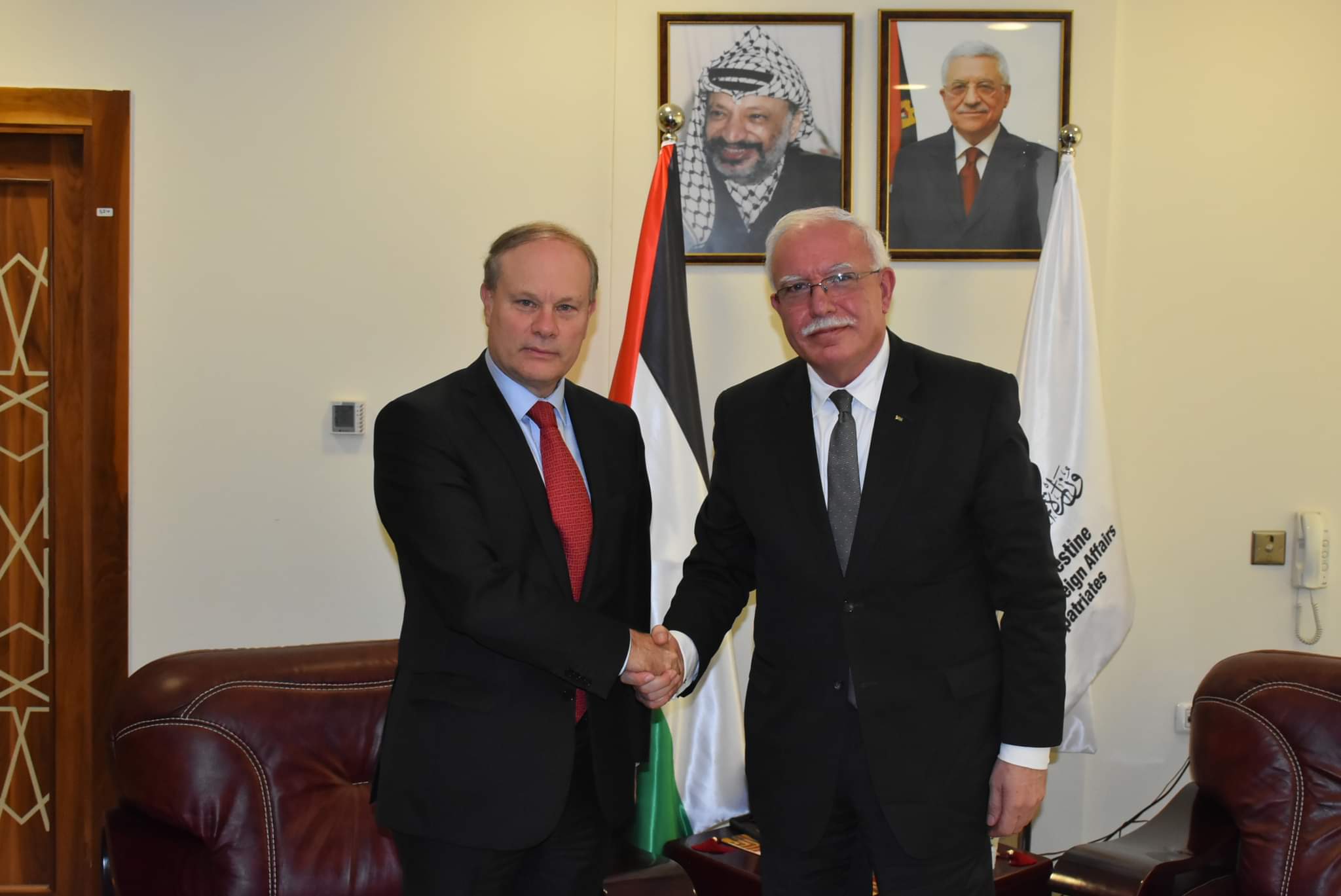 رام الله 7-12-2022 وفا- أطلع وزير الخارجية والمغتربين رياض المالكي، القنصل العام الفرنسي رينيه تروكاز، على آخر المستجدات السياسية على الساحة الفلسطينية والدولية، خلال لقائهما، اليوم الأربعاء، بمقر الوزارة في رام الله.