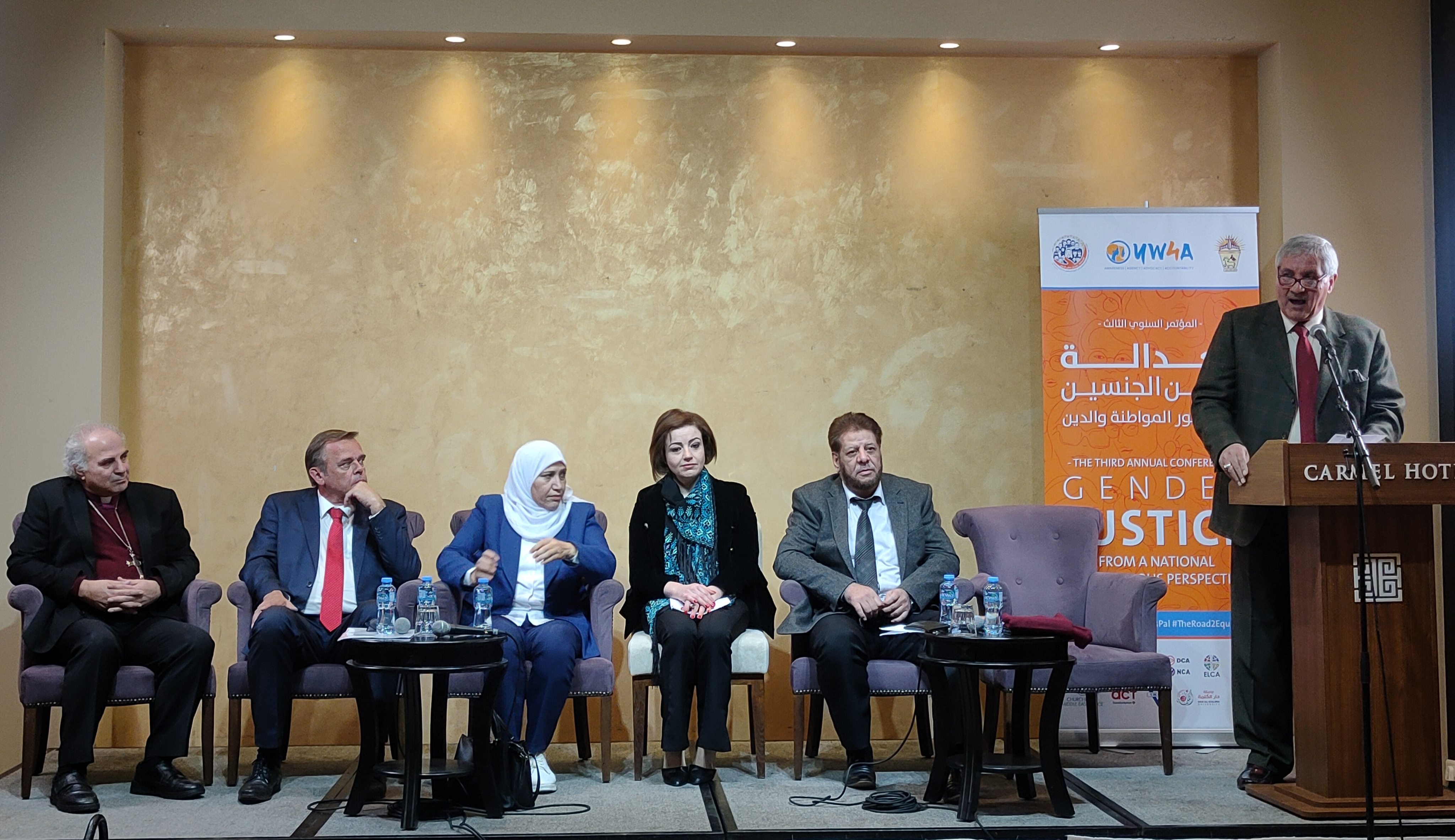 وقالت وزيرة شؤون المرأة آمال حمد في المؤتمر الذي نظمته الكنيسة، اليوم الأربعاء، في مدينة رام الله، بالتعاون مع مؤسسات تختص بالعدالة بين الجنسين تحت عنوان "العدالة بين الجنسين من منظور المواطنة والدين"، إنه في فلسطين يتم توفير الحماية الدستورية والقانونية والأمنية لكل مكونات المجتمع القومية والدينية، حيث جاء في وثيقة إعلان الاستقلال "إن دولة فلسطين هي للفلسطينيين أينما كانوا فيها يطورون هويتهم الوطنية والثقافية، ويتمتعون بالمساواة الكاملة في الحقوق، تُصان فيها معتقداتهم الدينية والسياسية وكرامتهم الإنسانية".