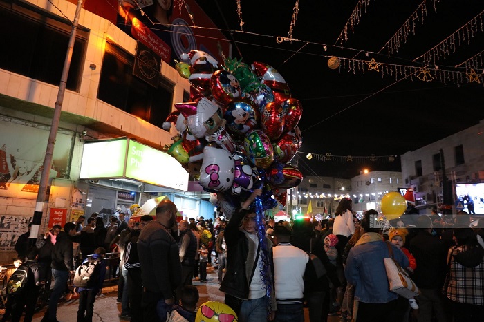 بيت لحم 8-12-2022 وفا- احتفل أهالي مدينة بيت ساحور، مساء اليوم الخميس، بإضاءة شجرة عيد الميلاد المجيد.