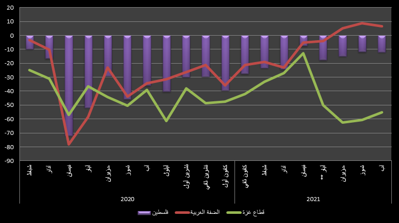وبشكل عام، أفاد أصحاب المنشآت المستطلعة آراؤهم في قطاع غزة بتحسن مستوى الإنتاج، مع تحسن أكبر في المبيعات، مما أدى إلى انخفاض حجم المخزون التراكمي. لذلك جاءت توقعاتهم إيجابية بشأن مستويات التوظيف والإنتاج في الثلاثة أشهر المقبلة.