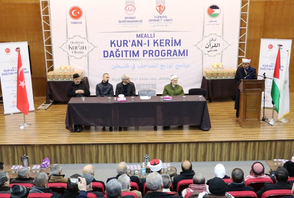 وفي كلمة مسجلة ألقاها نائب رئيس مؤسسة وقف الديانة التركية عبد الرحمن طشطن، تحدث فيها عن هذا المشروع والذي بدأ قبل ٧ سنوات، حيث تم توزيع أكثر من٣ ملايين مصحف بكل العالم وبجميع اللغات، مؤكدا على الأهمية التي يوليها الشعب التركي لفلسطين والقدس، واستعداد هذا الشعب لتقديم ما يلزم للشعب الفلسطيني الصامد المجاهد.