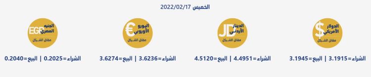 رام الله 17-2-2022 وفا- جاءت أسعار العملات مقابل الشيقل الإسرائيلي، اليوم الخميس، حسب سلطة النقد، على النحو التالي: