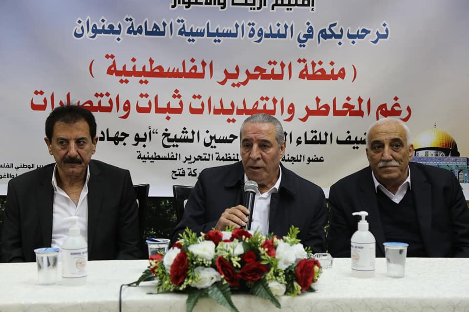 جاء ذلك خلال الندوة السياسية التي نظمتها حركة التحرير الوطني الفلسطيني "فتح" إقليم أريحا والأغوار في قاعة المؤتمرات بمقر المحافظة، اليوم الأحد، بعنوان "منظمة التحرير رغم المخاطر والتهديدات ثبات وانتصارات".