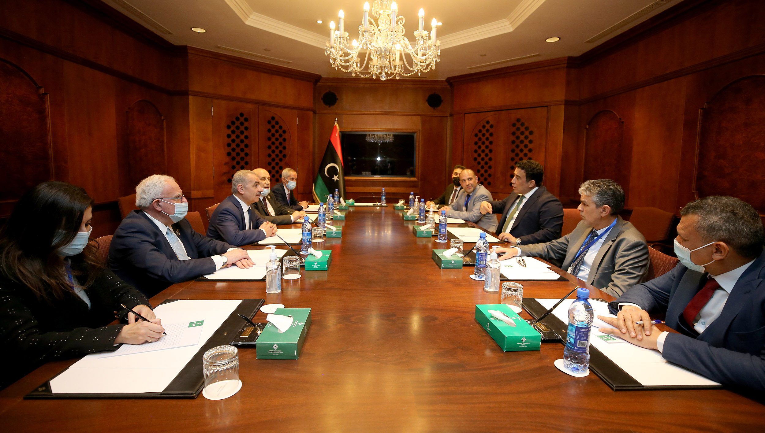 أديس أبابا 5-2-2022 وفا- التقى رئيس الوزراء محمد اشتية، اليوم السبت على هامش انعقاد القمة الأفريقية، رئيس المجلس الرئاسي الليبي محمد المنفي.