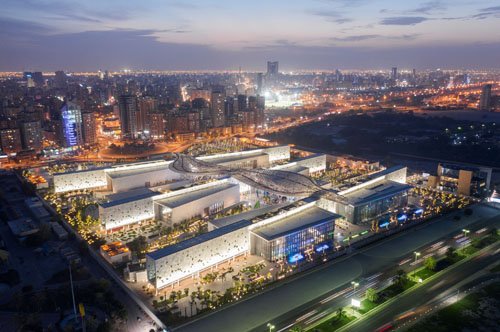 وشيد المركز على مساحة إجمالية تبلغ نحو 127 ألف متر مربع بمساحة مبان تبلغ 30 ألف متر مربع وحدائق مقامة على مساحة 97 ألف متر مربع فيما يبلغ مجموع المساحة المبنية وهي عبارة عن طابقين سفليين وثلاثة طوابق عليا نحو 123 ألف متر مربع فيما تزين المركز 25 نافورة مياه موزعة حول المحيط الخارجي للمباني لتضيف أجواء جمالية إلى ذلك الصرح.