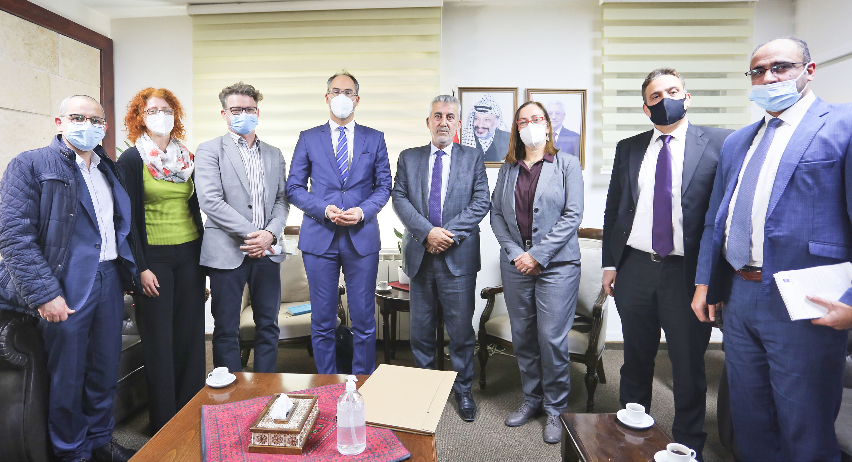 رام الله 9-2-2022 وفا- بحث وزير الحكم المحلي مجدي الصالح، اليوم الأربعاء، مع وفد من الممثلية الألمانية وإدارة مؤسسة التعاون الألماني (GIZ)، البرامج والمشاريع التي تنفذ في قطاع الحكم المحلي وتمولها الحكومة الألمانية.