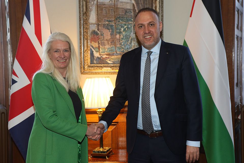 وأعرب عن شكره للوزيرة البريطانية، التي تم تعيينها مؤخرا لمتابعة شؤون الشرق الأوسط، على موقف بريطانيا المؤيد لإنهاء الاحتلال وإقامة دولة فلسطينية كاملة السيادة على حدود 1967، والمعارض لسياسة الاستيطان الاستعماري غير القانوني في الأراضي المحتلة، مؤكدا ضرورة اتخاذ خطوات عملية وملموسة وعلى رأسها الاعتراف بدولة فلسطين.