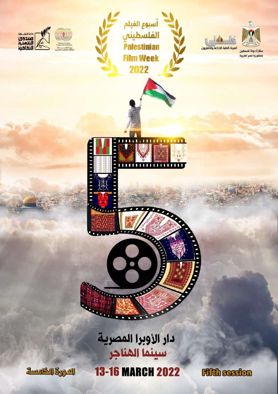القاهرة 11-3-2022 وفا- تفتتح سفارة دولة فلسطين بالقاهرة، بالتعاون مع صندوق التنمية الثقافية وقطاع العلاقات الثقافية الخارجية والهيئة العامة للإذاعة والتلفزيون، بعد غد الأحد، الدورة الخامسة لأسبوع الفيلم الفلسطيني بجمهورية مصر العربية، وذلك تزامنًا مع يوم الثقافة الفلسطينية المعتمد في يوم ميلاد الشاعر الكبير محمود درويش.
