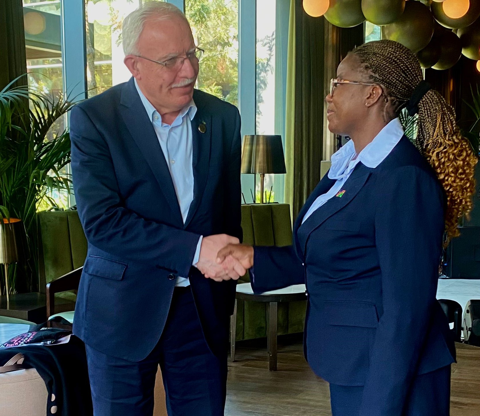 انطاليا 13-3-2022 وفا- بحث وزير الخارجية والمغتربين رياض المالكي مع نائب وزير خارجية ناميبيا جينيلي ماتوندو، تعزيز العلاقات الثنائية، وفتح الأبواب للتعاون والعمل المشترك بين البلدين، وتوقيع مذكرات تفاهم بين الطرفين في المجالات السياسية والصحية والثقافية والتجارية.
