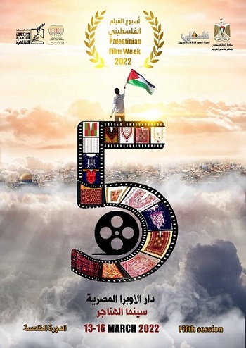 القاهرة 13-3-2022 وفا- افتتحت سفارة دولة فلسطين بالقاهرة، بالتعاون مع صندوق التنمية الثقافية وقطاع العلاقات الثقافية الخارجية، والهيئة العامة للإذاعة والتلفزيون الفلسطينية، اليوم الأحد، الدورة الخامسة لأسبوع الفيلم الفلسطيني في دار الأوبرا المصرية "سينما الهناجر" تزامنا مع يوم الثقافة الفلسطينية.