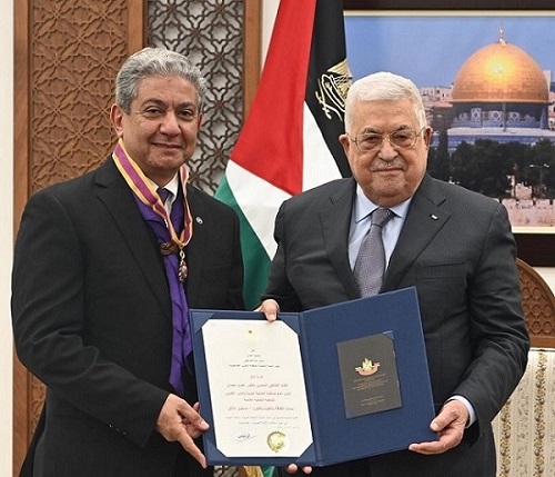 رام الله 18-3-2022 وفا- قلد رئيس دولة فلسطين محمود عباس، القائد الكشفي المصري د.عمرو حمدي الأمين العام للمنظمة الكشفية العربية، المدير الإقليمي للمنظمة الكشفية العالمية، وسام الثقافة والعلوم والفنون- مستوى التألق.