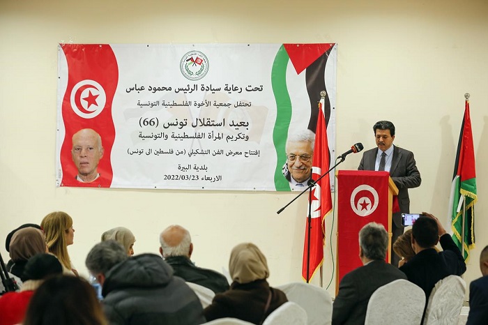 رام الله 23-3-2022 وفا- احتفلت جمعية الأخوة الفلسطينية التونسية، اليوم الأربعاء، بعيد استقلال تونس الـ66، وذلك تحت رعاية سيادة الرئيس محمود عباس. وتخلل الاحتفال الذي نظم في مدينة البيرة، تكريم المرأة العاملة الفلسطينية والتونسية.