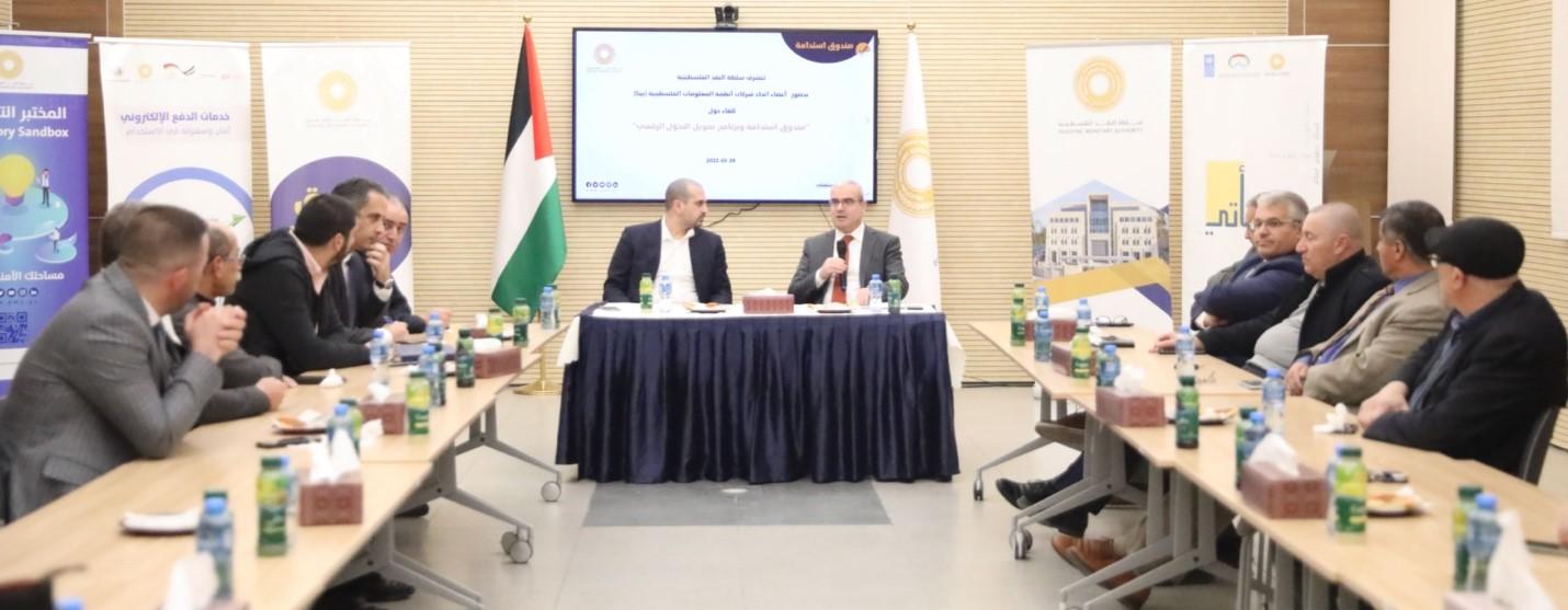 رام الله 29-3-2022 وفا- عقدت سلطة النقد، واتحاد شركات أنظمة المعلومات الفلسطينية (بيتا)، اليوم الثلاثاء، لقاء حول صندوق استدامة وبرنامج تمويل التحول الرقمي، بحضور محافظ سلطة النقد فراس ملحم، ورئيس مجلس إدارة "بيتا" تامر برانسي، وعدد من أعضاء الاتحاد من الشركات الفلسطينية المتخصصة بأنظمة المعلومات.