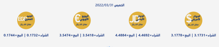 رام الله 31-3-2022 وفا- جاءت أسعار العملات مقابل الشيقل الإسرائيلي، اليوم الخميس، حسب سلطة النقد، على النحو التالي: