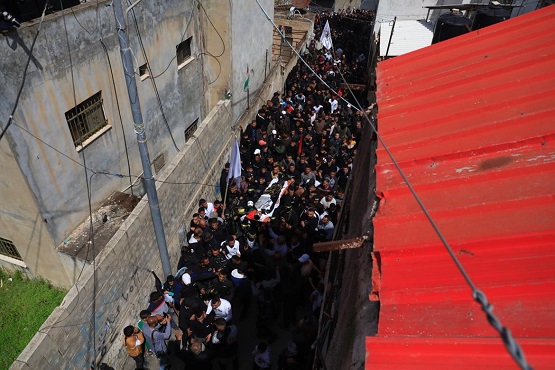 جنين 31-3-2022 وفا- شيع آلاف المواطنين، اليوم الخميس، جثماني الشهيدين يزيد نضال سعد الدين السعدي من مدينة جنين، وسند محمد خليل أبو عطية (17 عاما) من مخيم جنين.