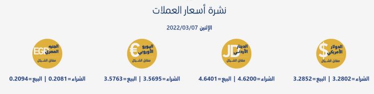 رام الله 7-3-2022 وفا- جاءت أسعار العملات مقابل الشيقل الإسرائيلي، اليوم الإثنين، حسب سلطة النقد، على النحو التالي: