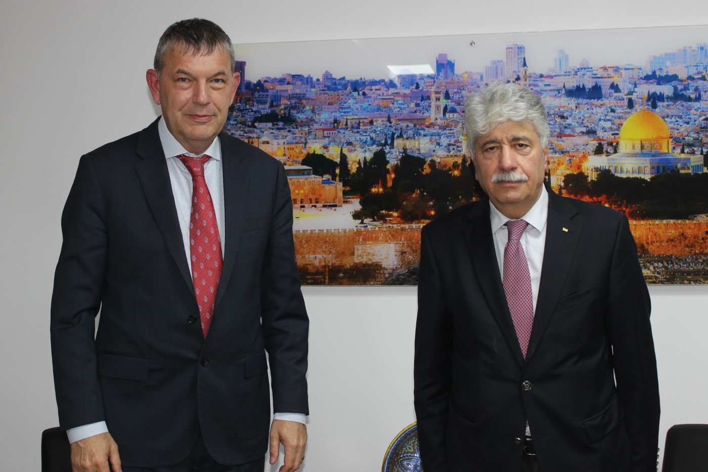 رام الله 12-4-2022 وفا- بحث عضو اللجنة التنفيذية لمنظمة التحرير الفلسطينية، الأمين العام لجبهة النضال الشعبي الفلسطيني أحمد مجدلاني، مع المفوض العام لوكالة الأمم المتحدة لغوث وتشغيل اللاجئين الفلسطينيين (أونروا) فيليب لازاريني، الوضع المالي الصعب الذي تواجهه الوكالة، وتأثيره على استدامة تقديمها للخدمات في ظل الظروف الصعبة التي يمر بها أبناء شعبنا في المخيمات.