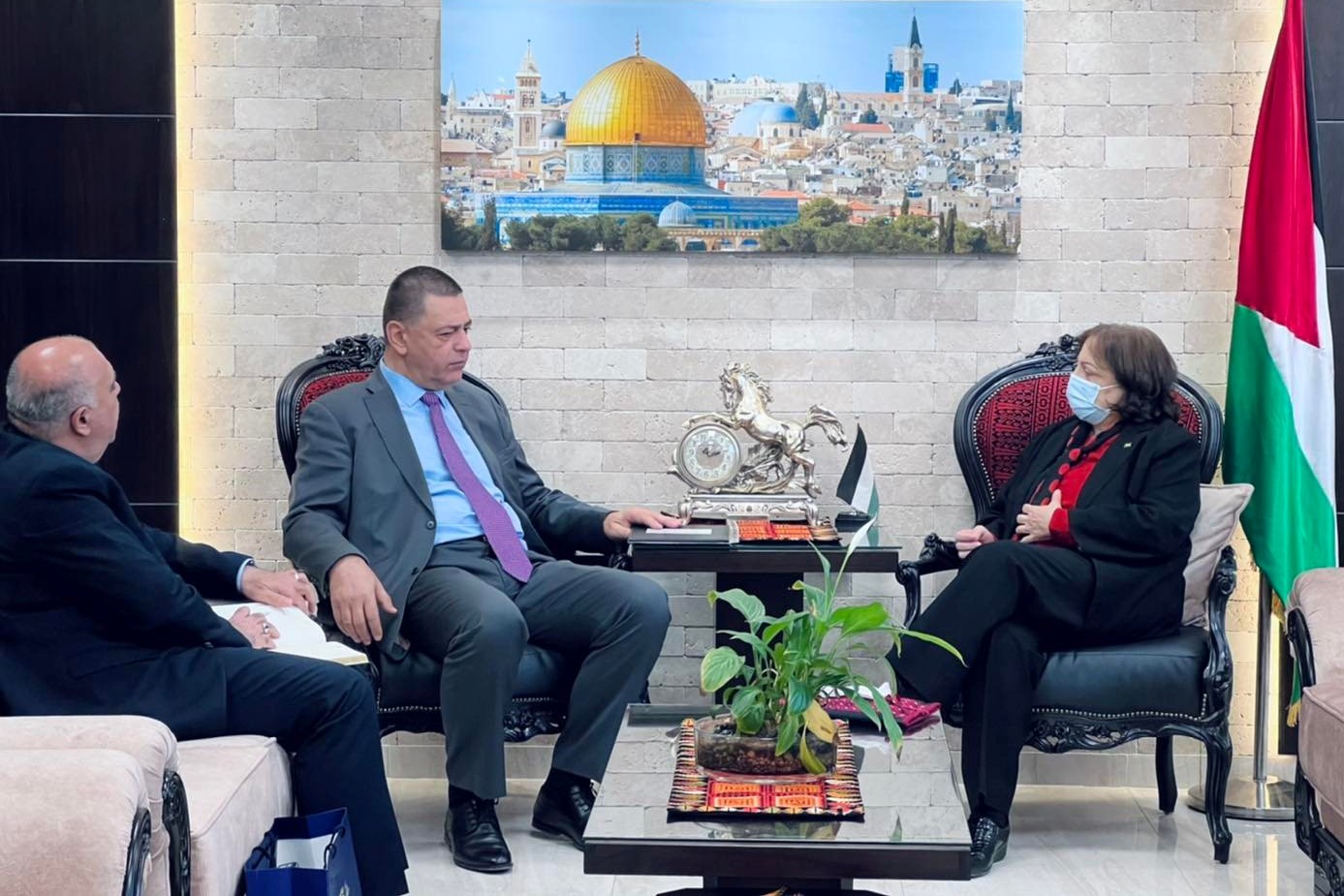 وأطلعت وزيرة الصحة السفير تيرلا على الواقع الصحي في فلسطين، والجهود التي بُذلت في مواجهة جائحة كورونا، ومراحل تطور المنظومة الصحية الفلسطينية، والخطة الاستراتيجية لتوفير وتطوير جميع الخدمات الصحية.