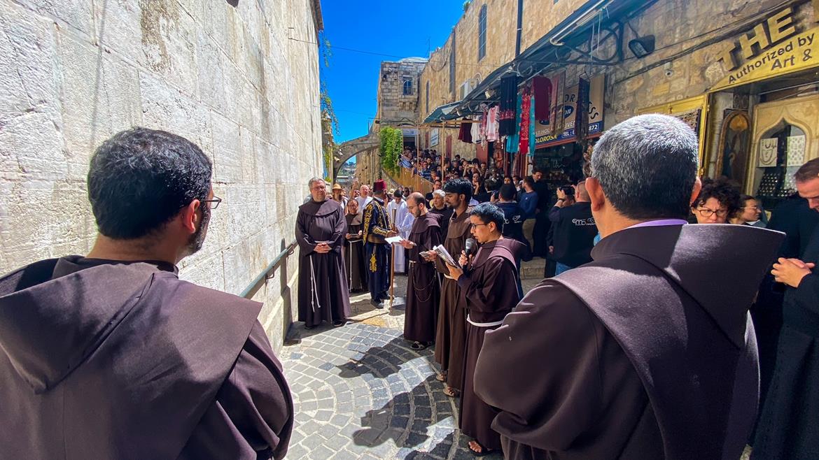 وفي مدينة القدس المحتلة، أقيمت "مسيرة درب الصليب" في "طريق الآلام"، بمشاركة لفيف من الكهنة والرهبان والراهبات وجموع المصلين من القدس والحجاج الأجانب، في الوقت الذي حرمت فيه سلطات الاحتلال الآلاف من الفلسطينيين المسيحيين من الضفة الغربية وقطاع غزة من الوصول إلى مدينة القدس للمشاركة في قداديس وصلوات الأسبوع المقدس، عبر عدم استصدار تصاريح دخول أو التضييق عليهم عند الحواجز العسكرية المحيطة بالمدينة التي شهدت الأحداث الدينية المرتبطة بالعيد.