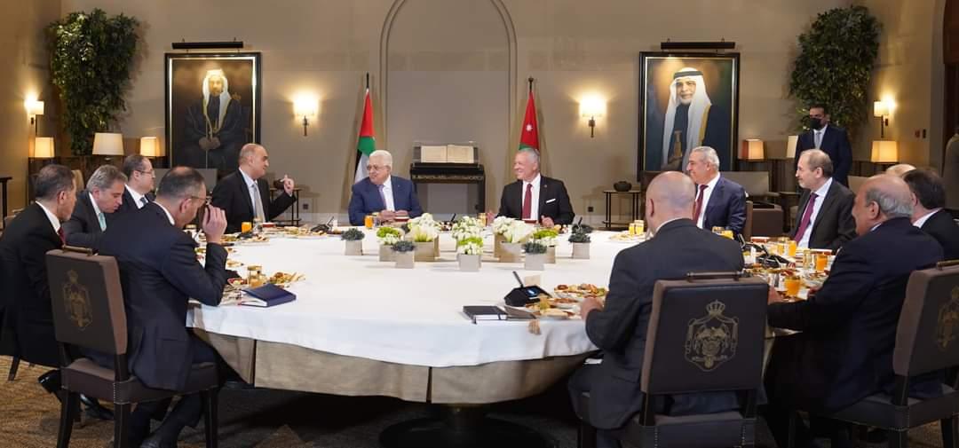 وأشار الرئيس إلى أهمية تكثيف الجهود والتنسيق الفلسطيني الأردني من أجل حشد طاقات المجتمع الدولي لوقف ممارسات الحكومة الإسرائيلية وسياساتها العدوانية ضد الشعب الفلسطيني وارضه ومقدساته. مشددا على أهمية الالتزام بمرجعيات العملية السياسية وقرارات الشرعية الدولية، وضرورة توفير الحماية الدولية للشعب الفلسطيني والعودة للأفق السياسي، بما يحقق نهاية الاحتلال عن أرض دولة فلسطين بعاصمتها القدس الشرقية.