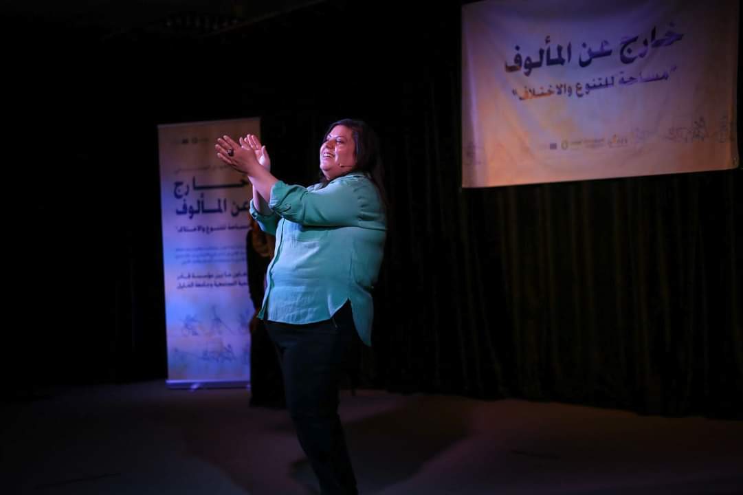وتشير إلى أن مشوارها بدأ مع المسرح في العام 2013 ضمن مشروع مع مسرح الحارة يهتم بدمج النساء ذوات الإعاقة في الأنشطة الثقافية، مضيفة أنه بعد اختيارها بدأت بالتدرب على المسرحيات سافرت لأول مرة في حياتها إلى دولة السويد ليتم تدريبها على فنون المسرح.