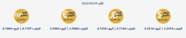 رام الله 29--52022 وفا- جاءت أسعار العملات مقابل الشيقل الإسرائيلي، اليوم الأحد، حسب سلطة النقد، على النحو التالي: