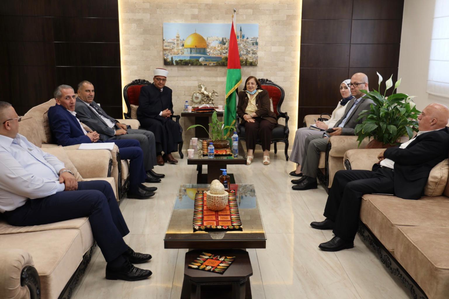 رام الله 12-6-2022 وفا- بحثت وزيرة الصحة مي الكيلة، مع وزير الأوقاف والشؤون الدينية الشيخ حاتم البكري، اليوم الأحد، الترتيبات الصحية لبعثة الحج الفلسطينية خلال موسم الحج للعام 2022، إضافة الى الترتيبات الخاصة بالبعثة الطبية الفلسطينية المرافقة، في مكتب وزيرة الصحة برام الله.