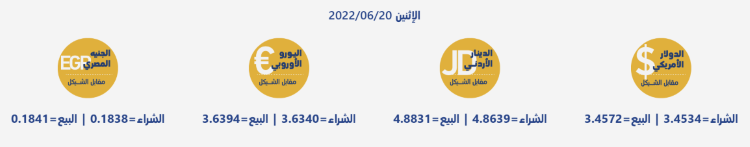 رام الله 20-6-2022 وفا- جاءت أسعار العملات مقابل الشيقل الإسرائيلي، اليوم الإثنين، حسب سلطة النقد، على النحو التالي: