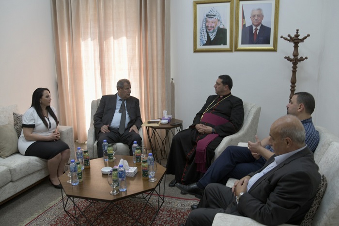 وفي سياق آخر، استقبل خوري أسقف الكنيسة الإنجيلية الأسقفية المطران حسام نعوم، في مقر الرئاسة بمدينة بيت لحم.