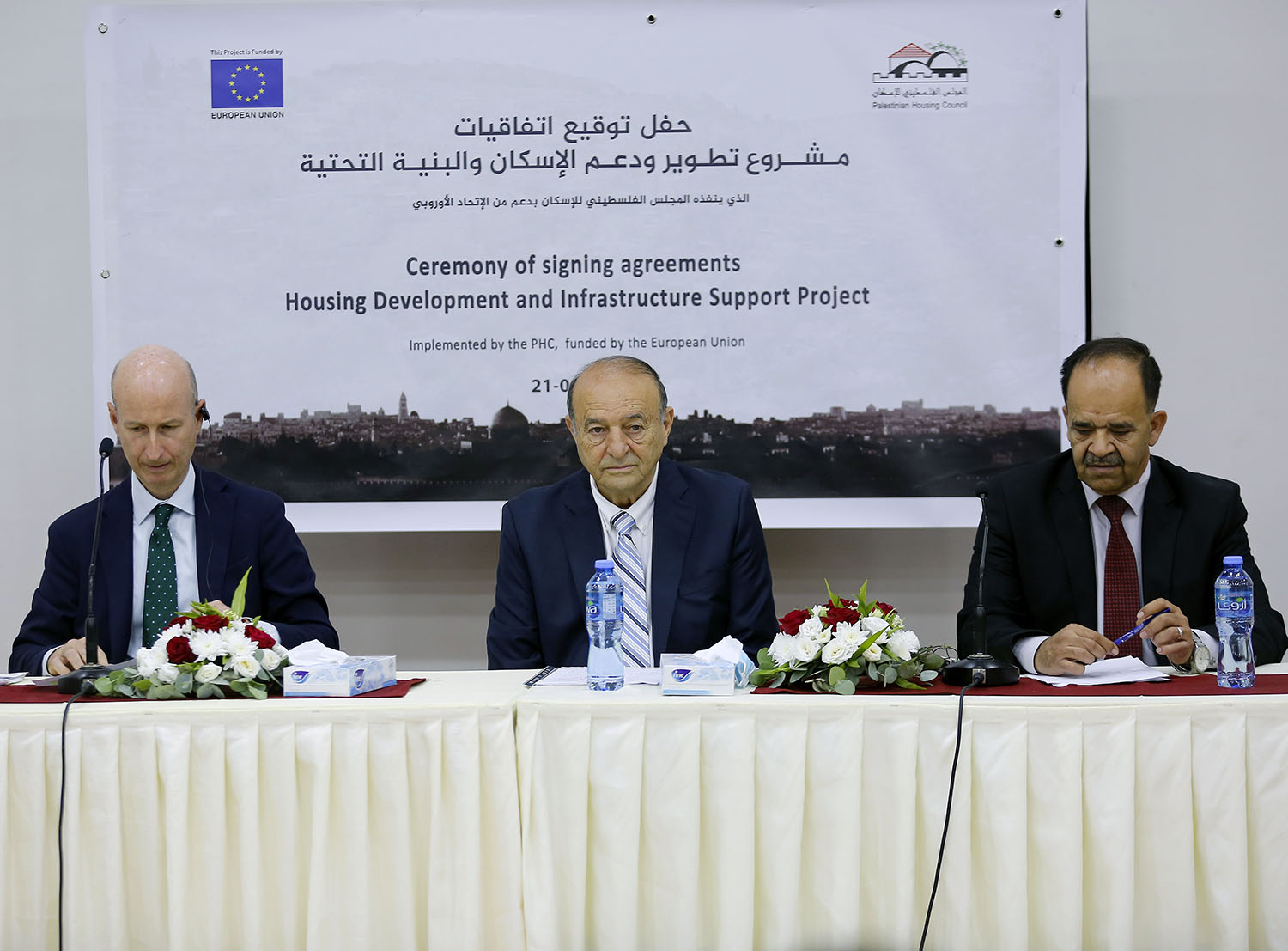 وقال رئيس مجلس إدارة المجلس الفلسطيني للإسكان سميح العبد، خلال توقيع الاتفاقية بمدينة رام الله، إننا نحتفل مع شركائنا في الاتحاد الأوروبي بتوقيع اتفاقيات المجموعة الأولى من المستفيدين من مشروع دعم وتطوير الإسكان والبنية التحتية في القدس الممول من الاتحاد الأوروبي، مضيفا أنه سيتم بموجبه توقيع 10 اتفاقيات لدعم الإسكان والبنية التحتية لـ 44 وحدة سكنية.