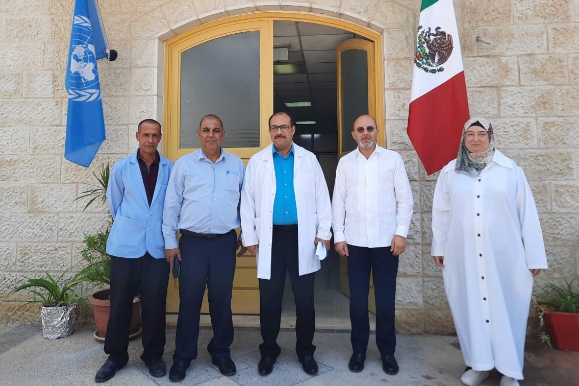 قلقيلية 24-6-2022 وفا- سلم ممثل المكسيك في فلسطين بيدرو بلانكو بيريز، معدات طبية لمستشفى وكالة الأمم المتحدة لغوث وتشغيل اللاجئين الفلسطينيين "الأونروا" في قلقيلية، بقيمة 200 ألف دولار.