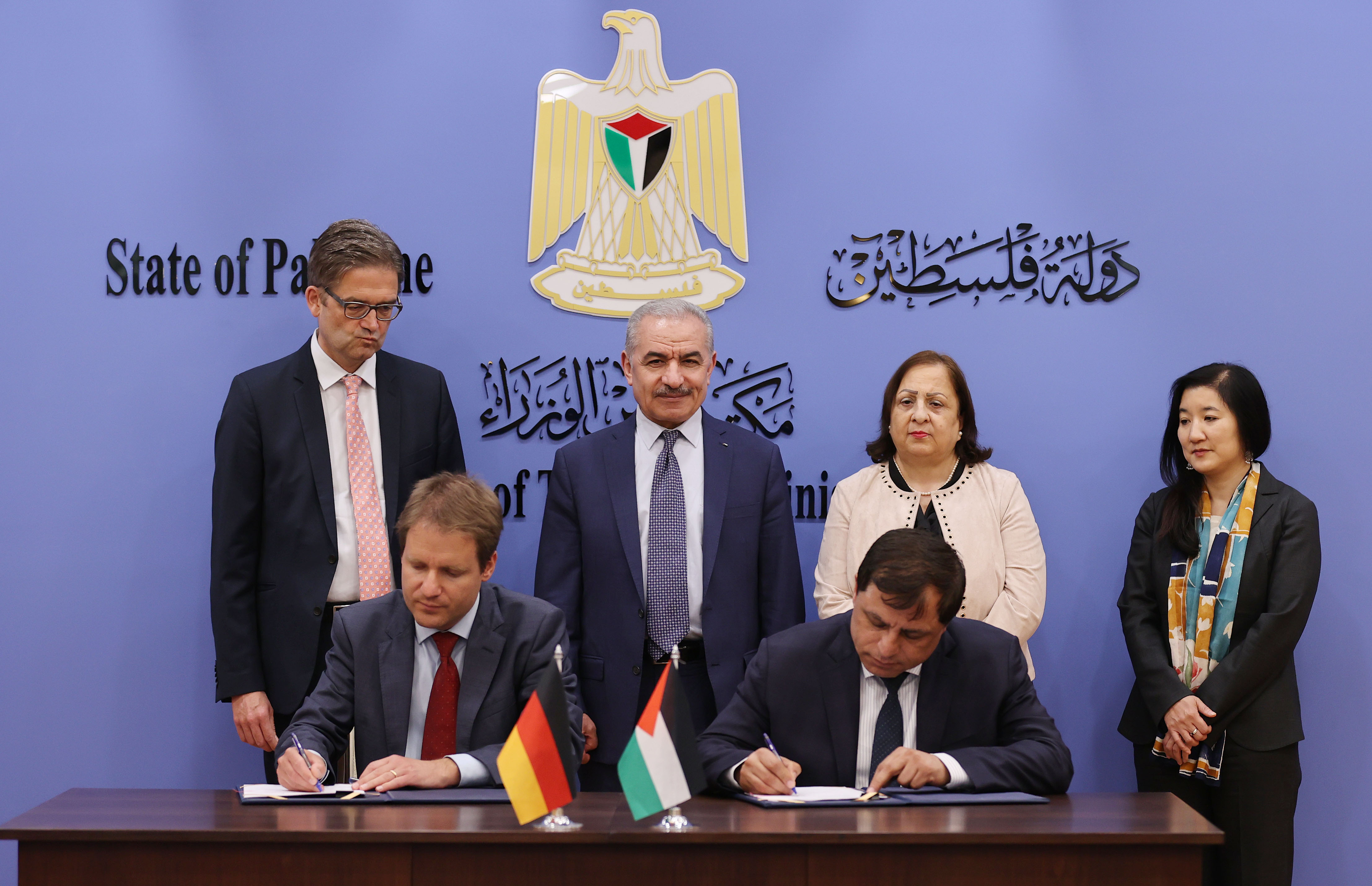 ووقعت الاتفاقية اليوم الخميس في مكتب رئيس الوزراء برام الله، بحضور وزيرة الصحة مي الكيلة، وممثل ألمانيا لدى فلسطين أوليفر أوفتشا، ووكيل وزارة المالية فريد غنام، ومدير مكتب بنك التنمية الألماني في فلسطين ديفيد كونز، ونائب الممثل الخاص لبرنامج الأمم المتحدة الإنمائي شيتوسي نوغوتشي.